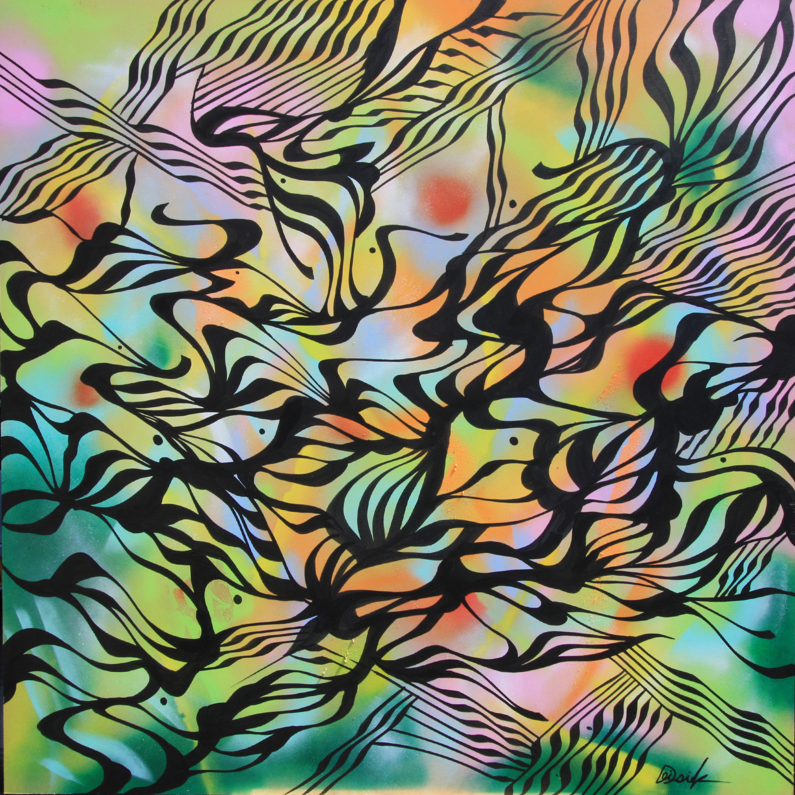 アートサイズ:1m80×1m80 ご依頼のタカをイメージで描きました。